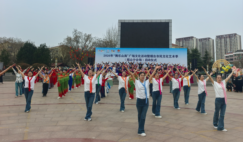 为深入推进文化惠民工程,丰富市民精神文化生活,3月29日上午,2026年"舞乐山海"广场文化活动暨烟台市民文化艺术季(福山分会场)在福山区河滨广场盛大启幕。学院人文社科系“烟舞坊”大学生舞蹈团受邀参演。同学们以灵动舞姿与饱满热情,为春日广场献上一场青春洋溢的舞蹈盛宴,充分展现了当代大学生的艺术风采与精神风貌。