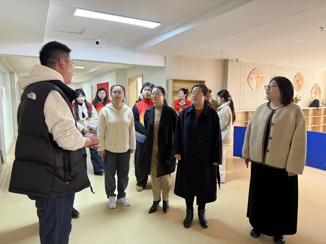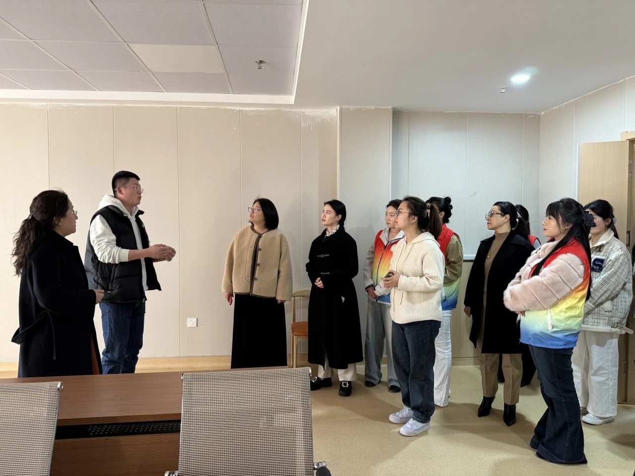 活动期间,在社区工作人员的引导下,教学管理党支部教师和学生团队依次参观了养老社区的舞蹈室、声乐室与手工室。通过实地观摩,师生们详细了解了各活动室的设施配置、场地使用效率及日常老年活动的开展模式,为后续专业对接与资源整合积累了第一手资料。