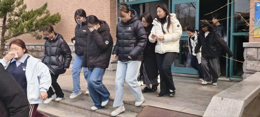 在公寓与教学楼各楼层引导员的指挥下,同学们捂住口鼻,弯腰低姿,按照预定的疏散路线,快速、有序地撤离到安全地带。整个过程紧张有序,达到了预期效果。此次演练有效提升了学生在面对突发事件时的应急处置能力和协同配合能力,为新学期校园安全打下了坚实基础。